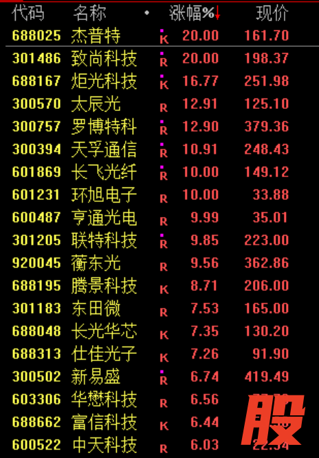 CPO等算力硬件股走强,杰普特、长飞光纤等涨停,罗博特科、天孚通信等涨超10%创新高,并且带动创业板指数上涨。