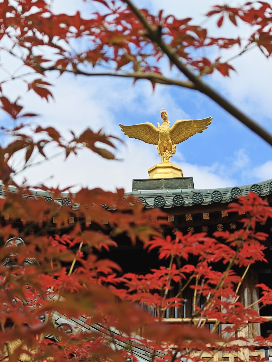 宝山寺红枫在蓝天的衬托下格外艳丽 新民晚报记者 刘歆 摄